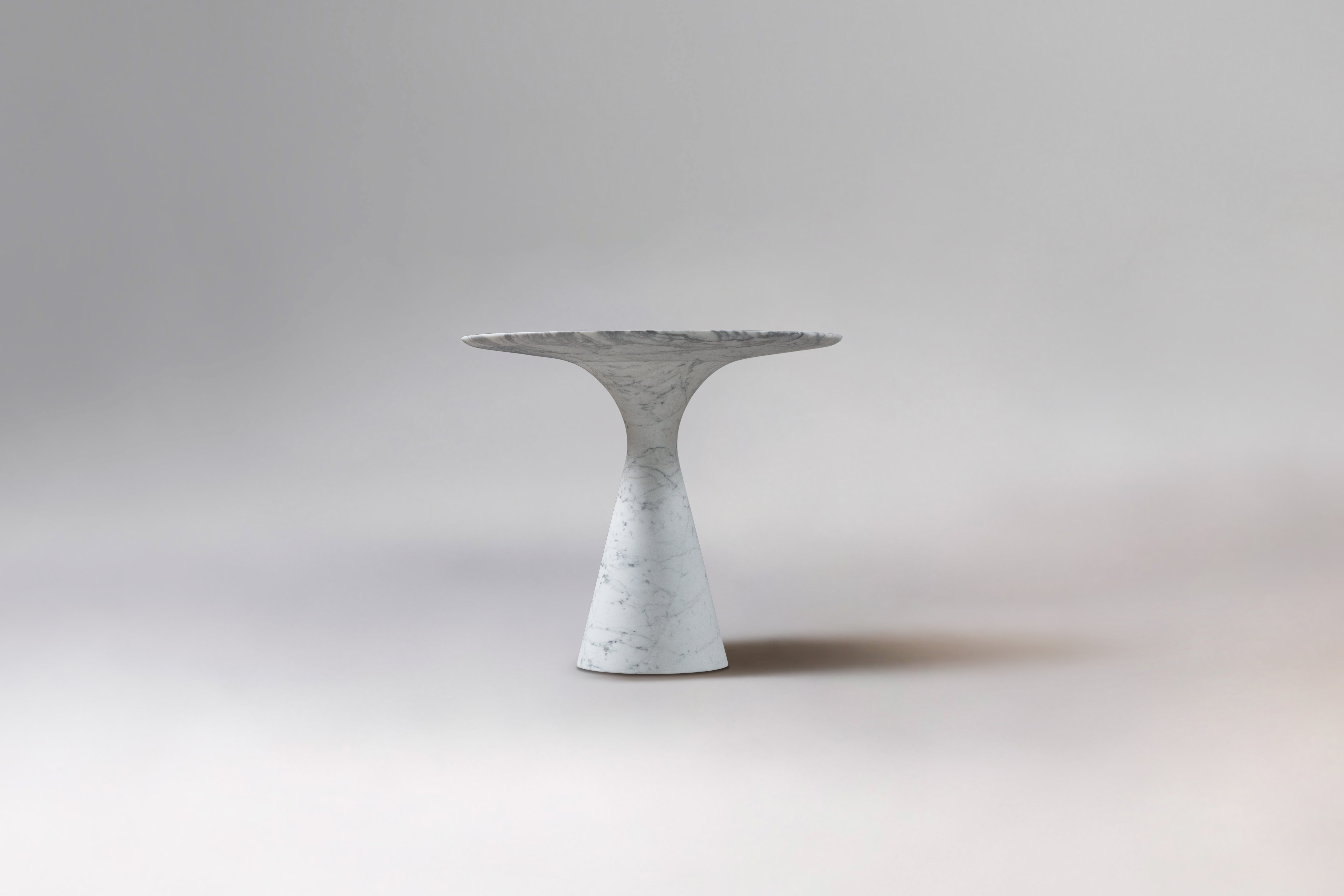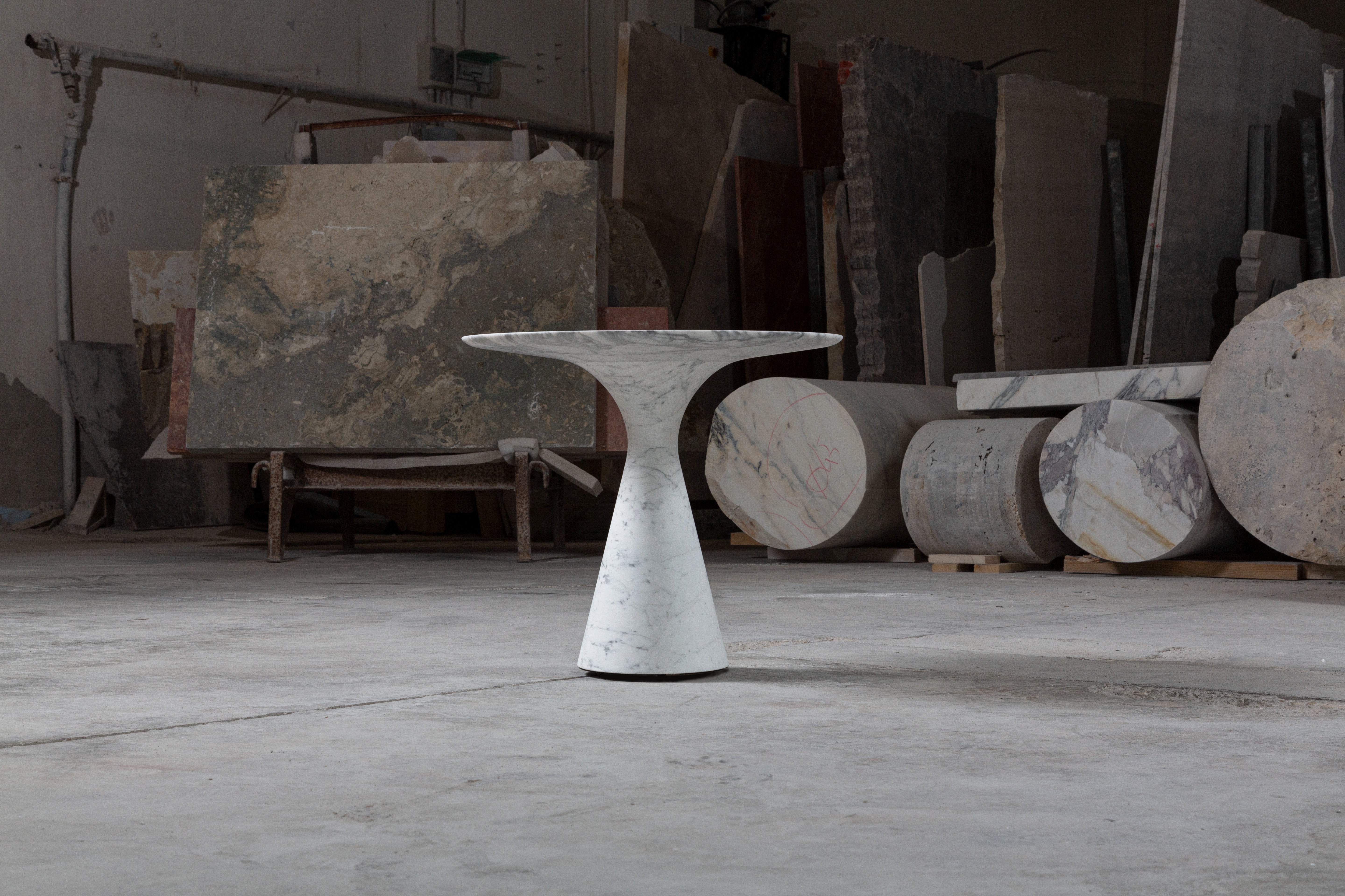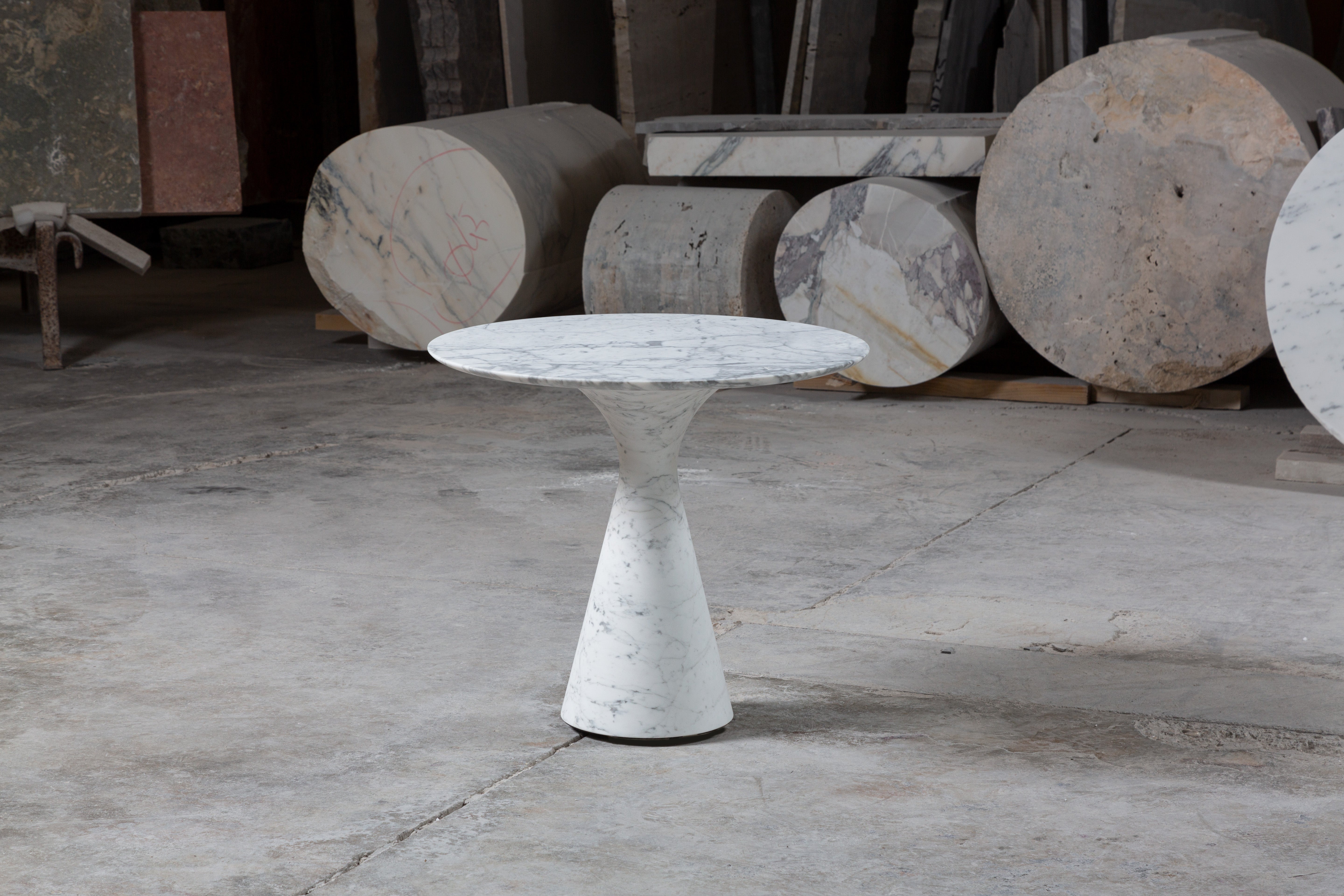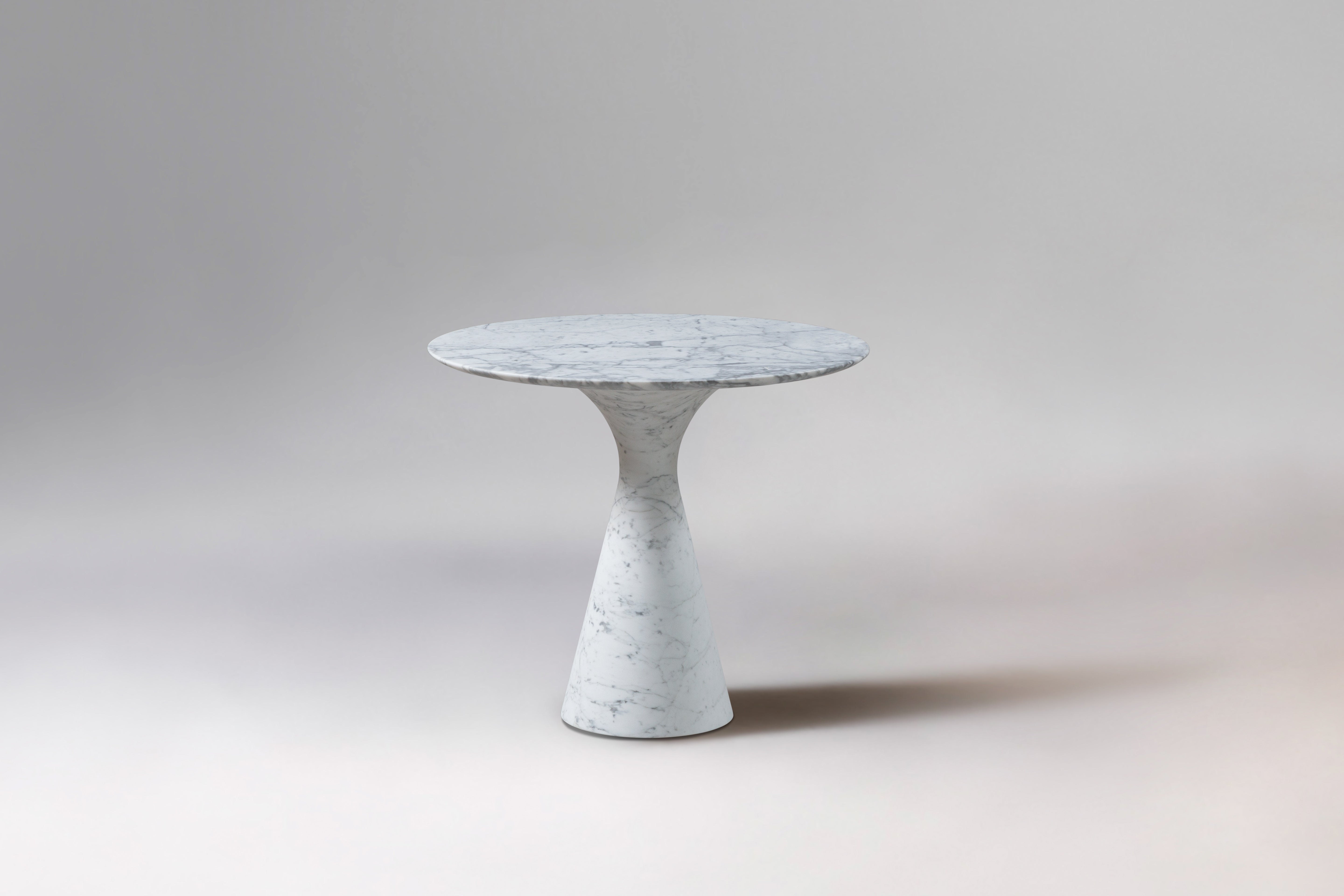 A family of side tables of different heights and dimensions that are perfect to combine. Two elements, table base and top, form one whole together. The bottom is one running curve from table foot to edge. The conical connection creates a stable whole.