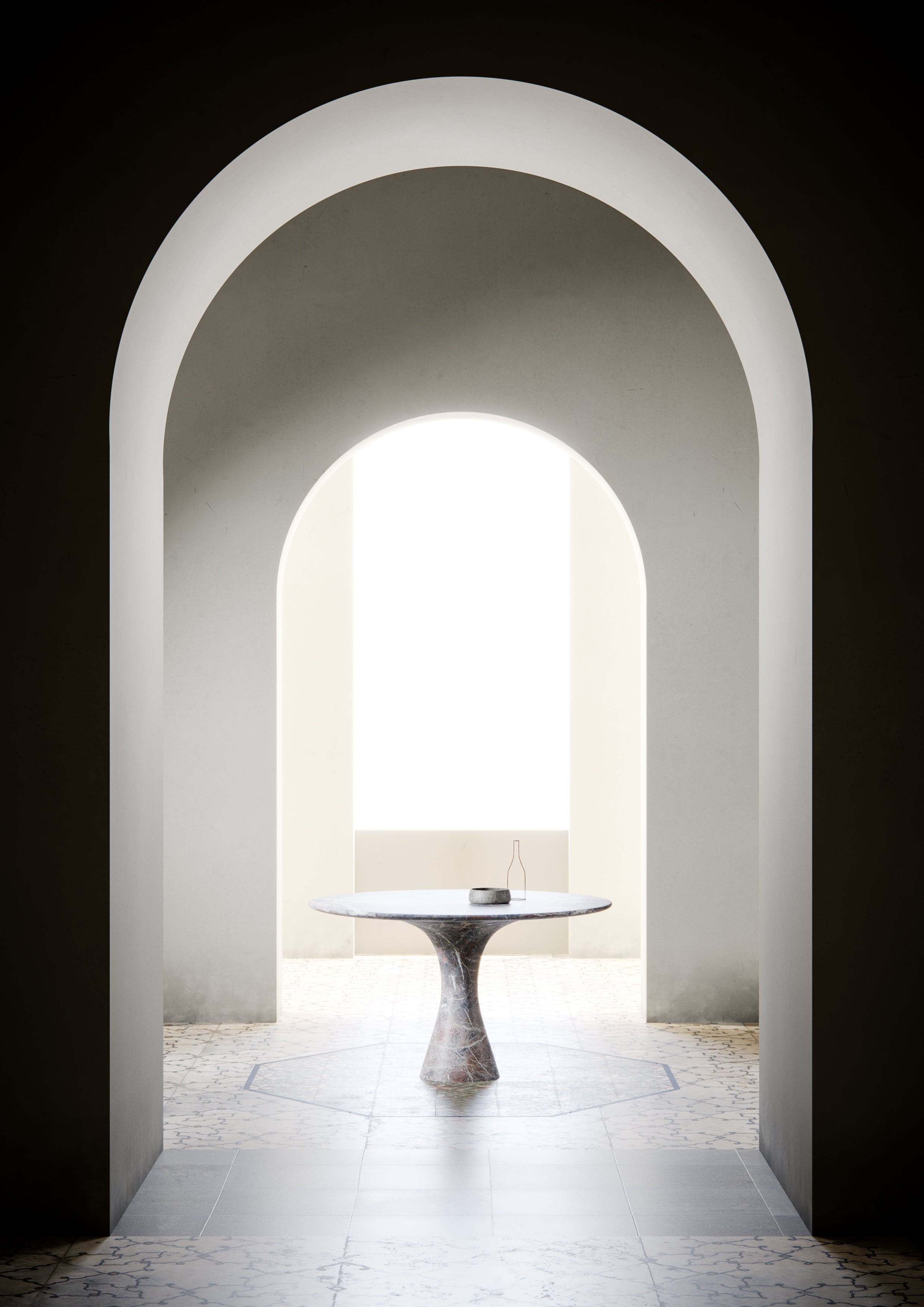 Angelo M is a timeless, sculptural round or oval table, available as a dining or side/coffee piece, crafted from natural stone. The seamless connection between the conical base and top creates a stable, continuous curve.