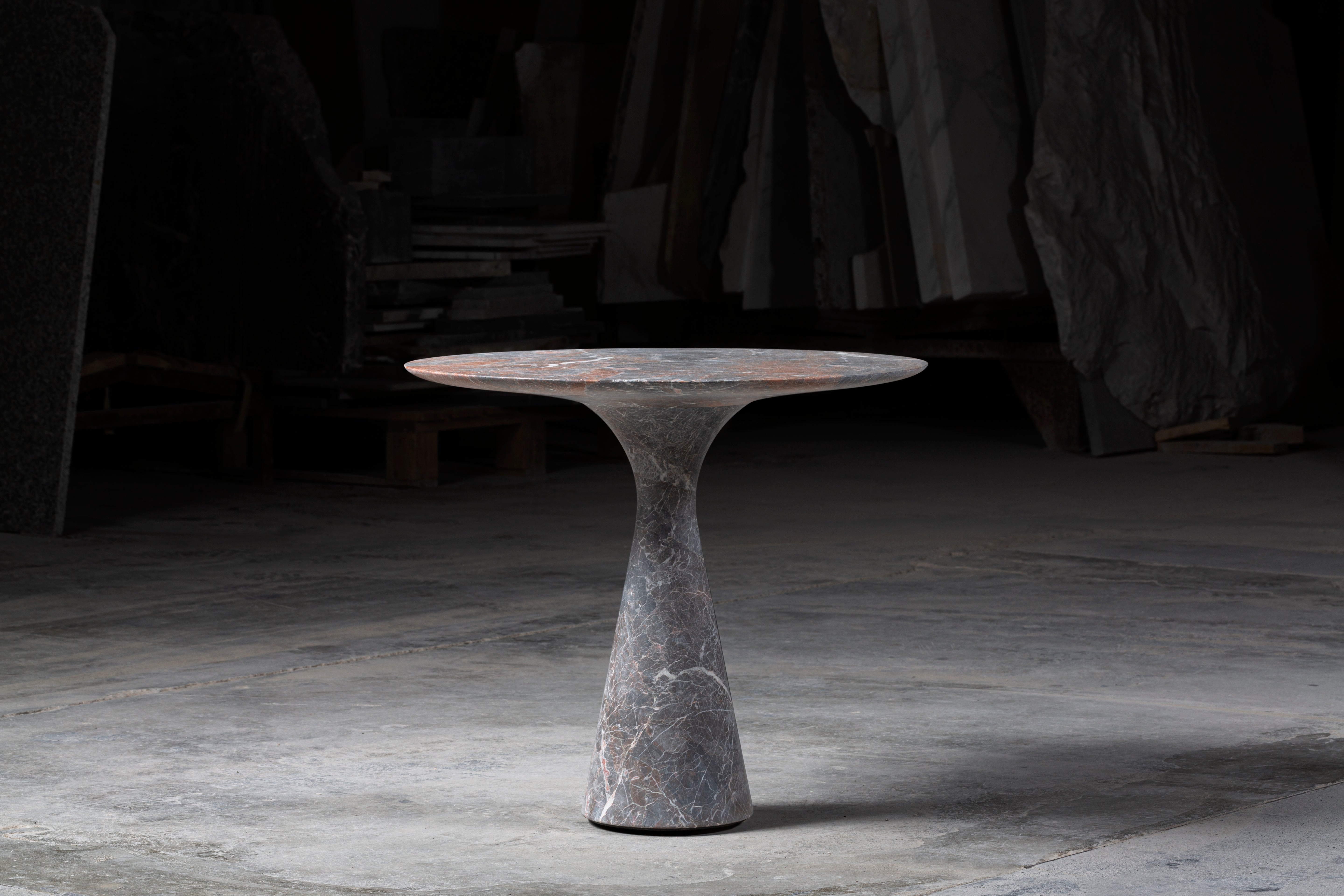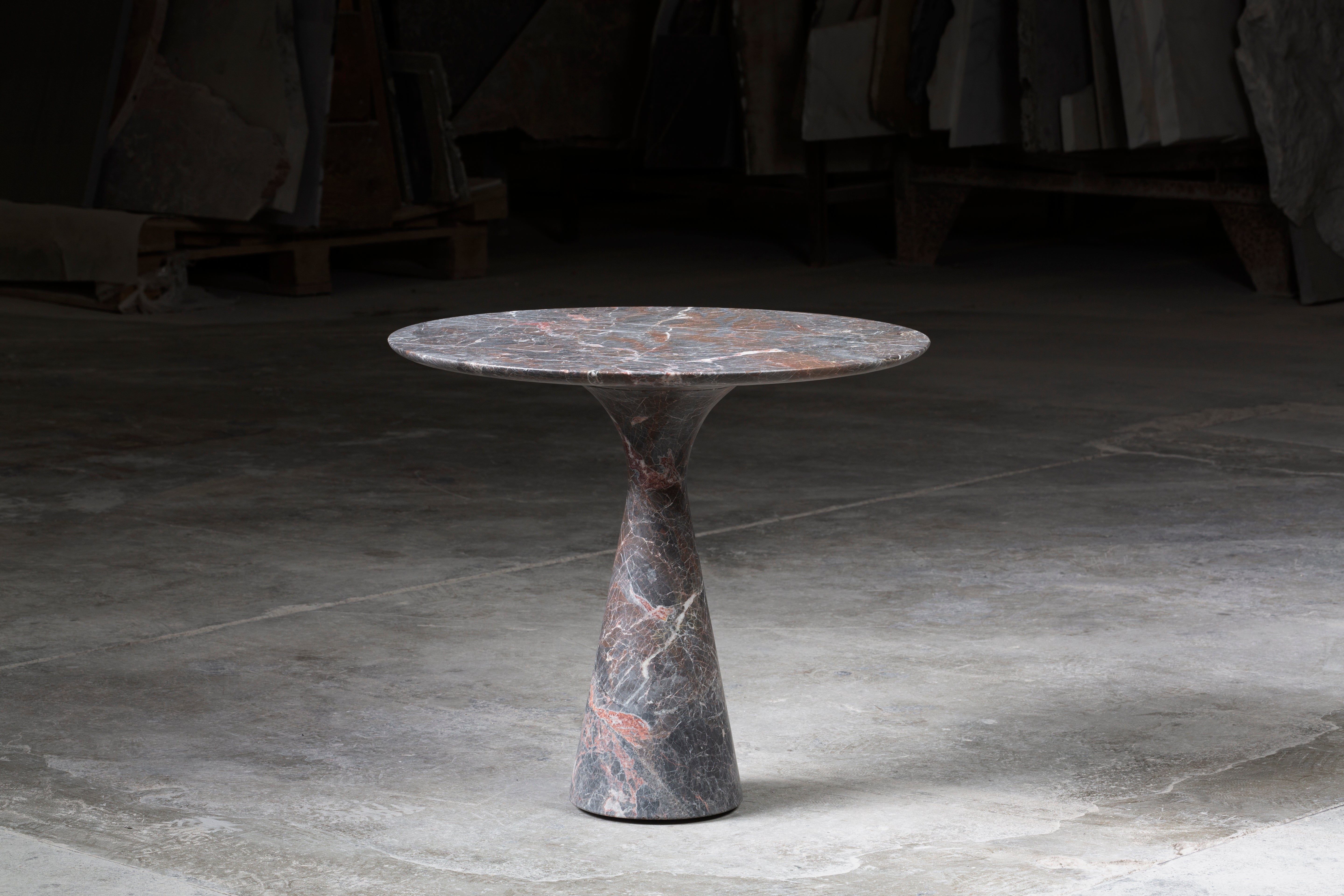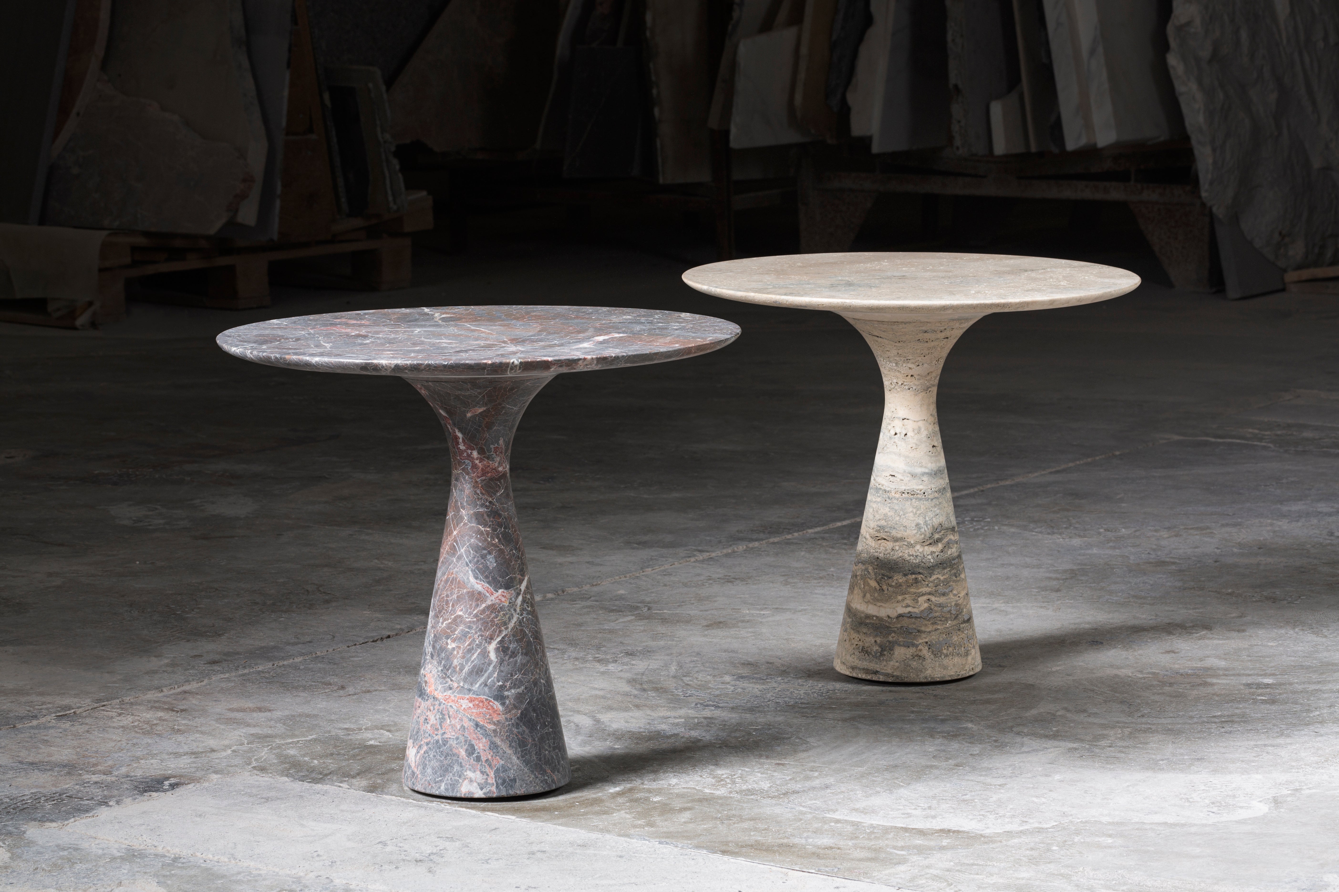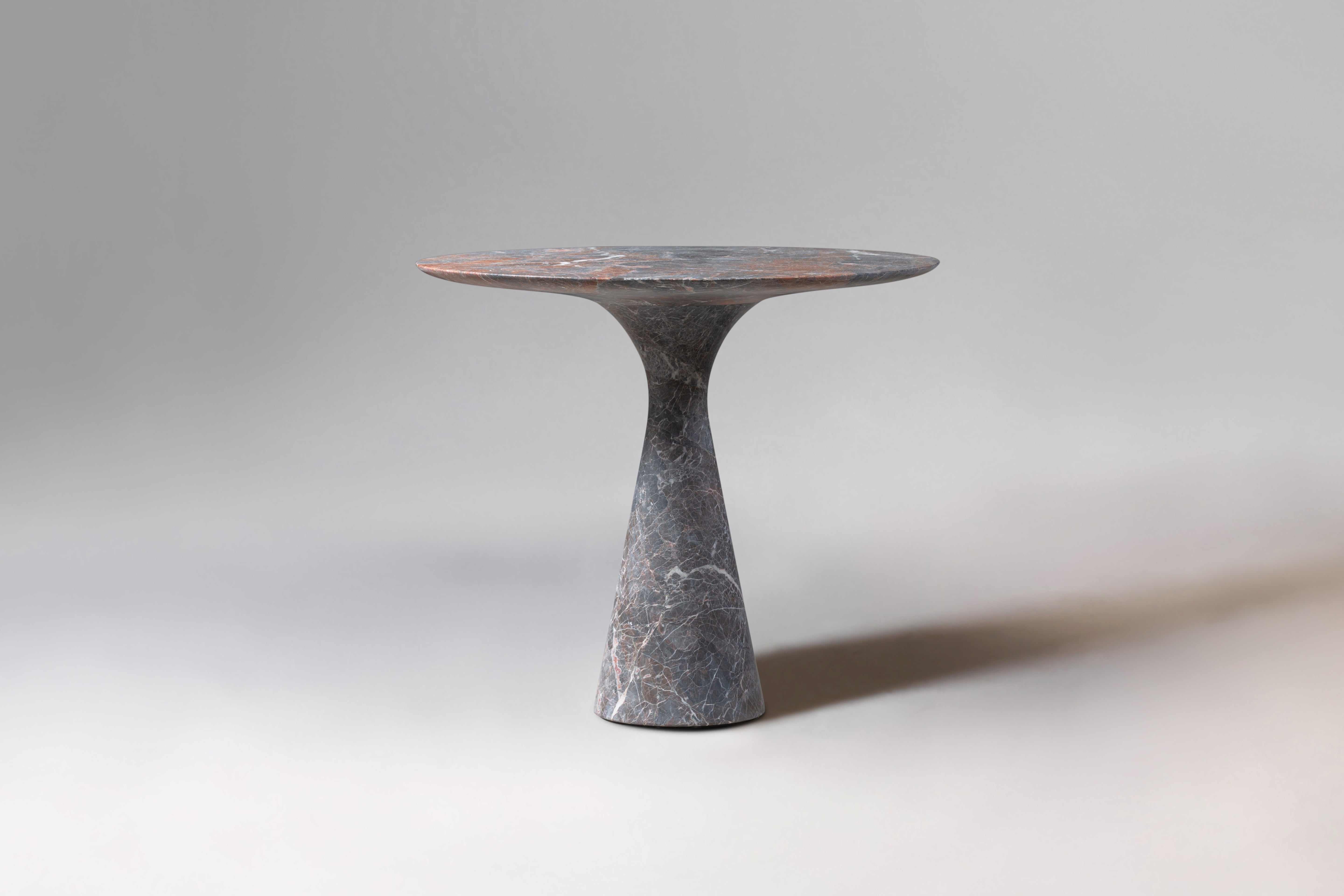A family of side tables of different heights and dimensions that are perfect to combine. Two elements, table base and top, form one whole together. The bottom is one running curve from table foot to edge. The conical connection creates a stable whole.