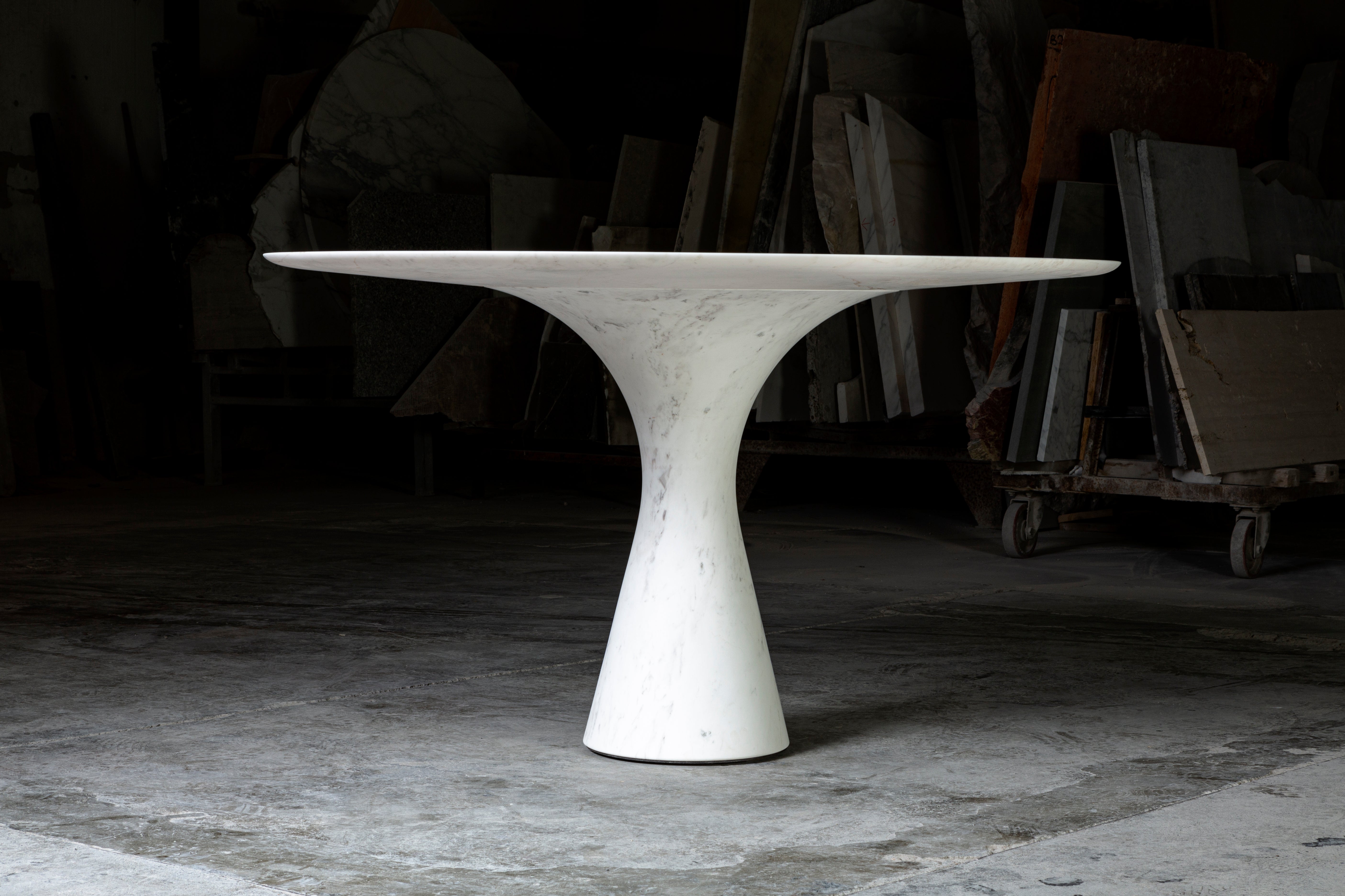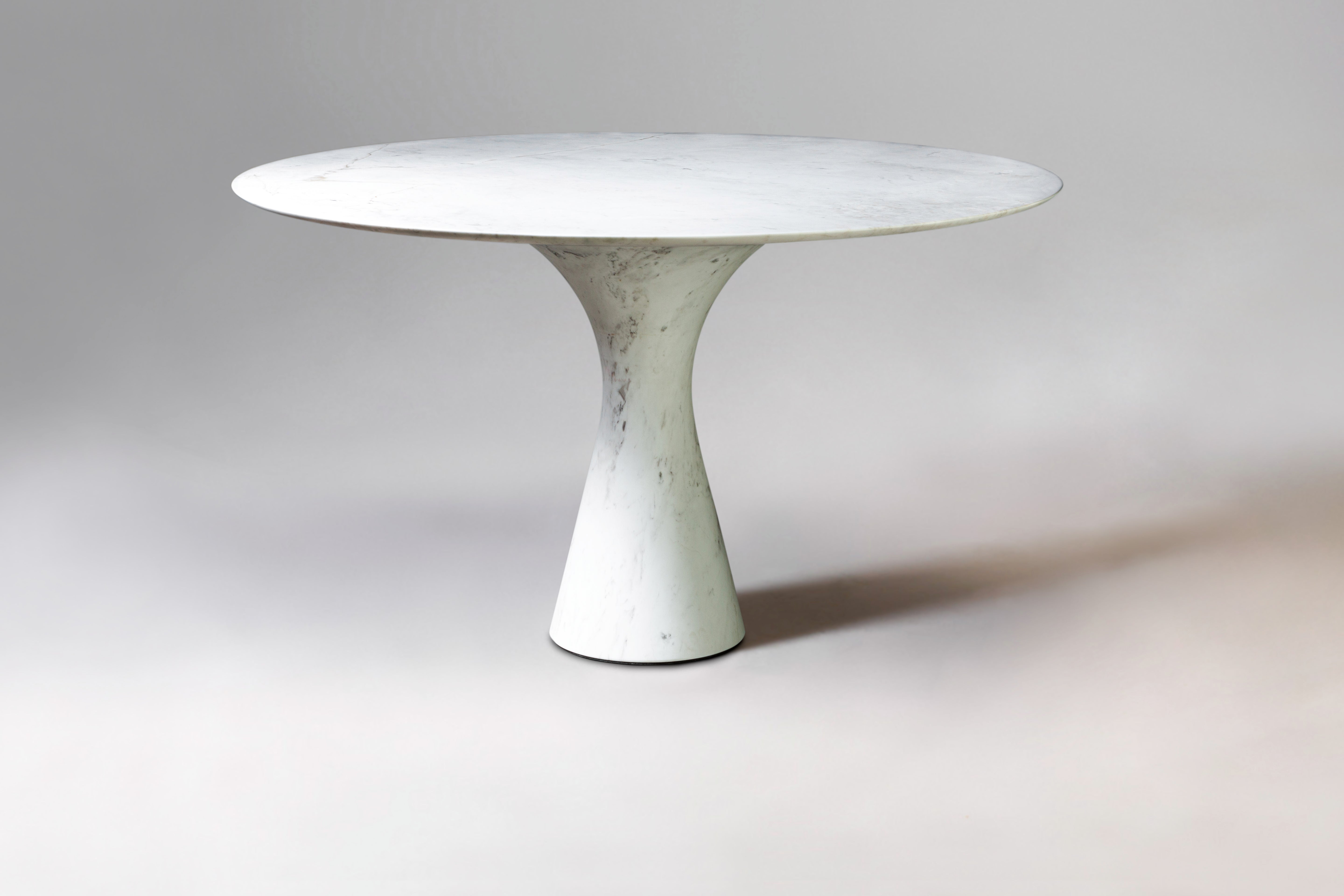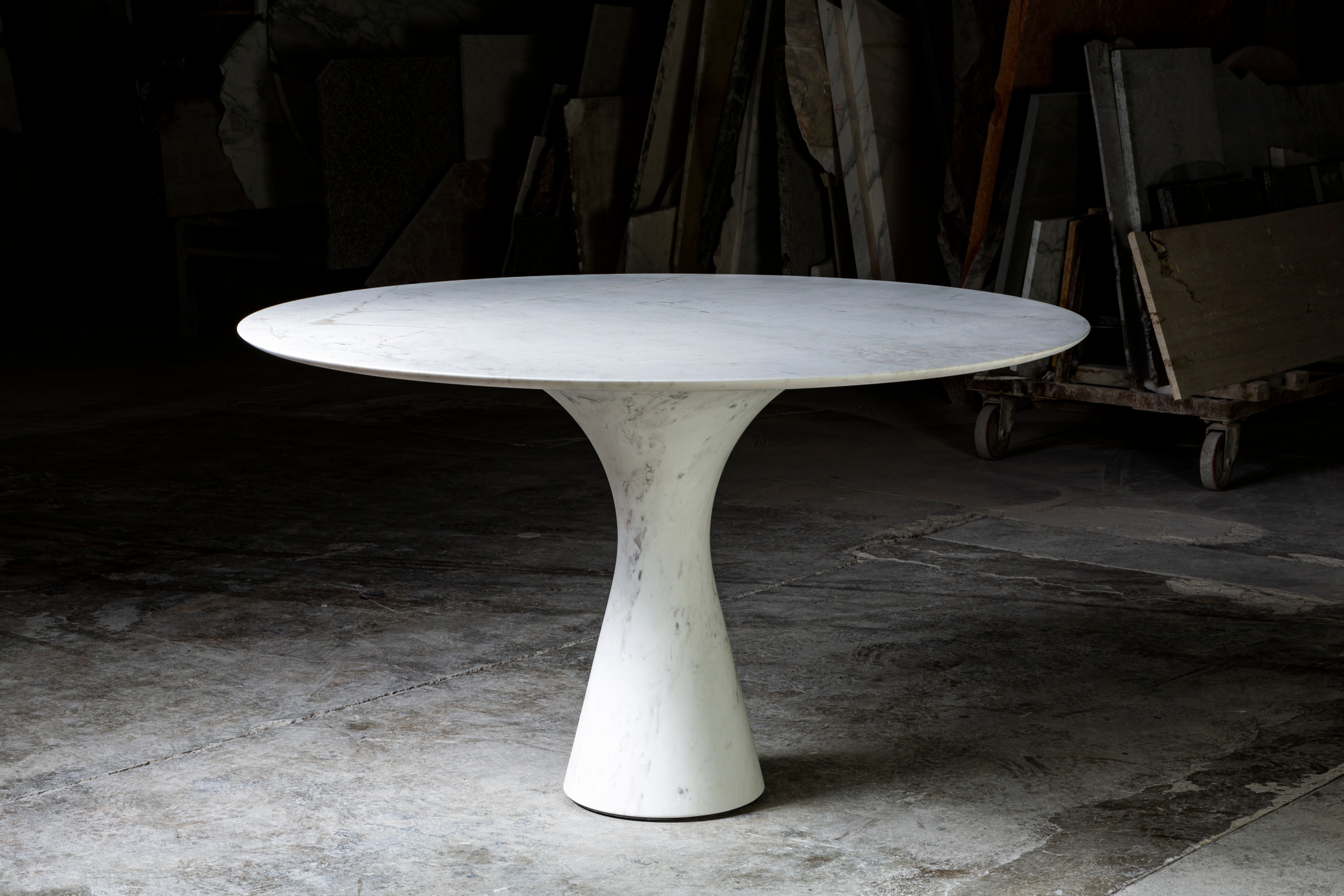 Angelo M is a timeless, sculptural round or oval table, available as a dining or side/coffee piece, crafted from natural stone. The seamless connection between the conical base and top creates a stable, continuous curve.