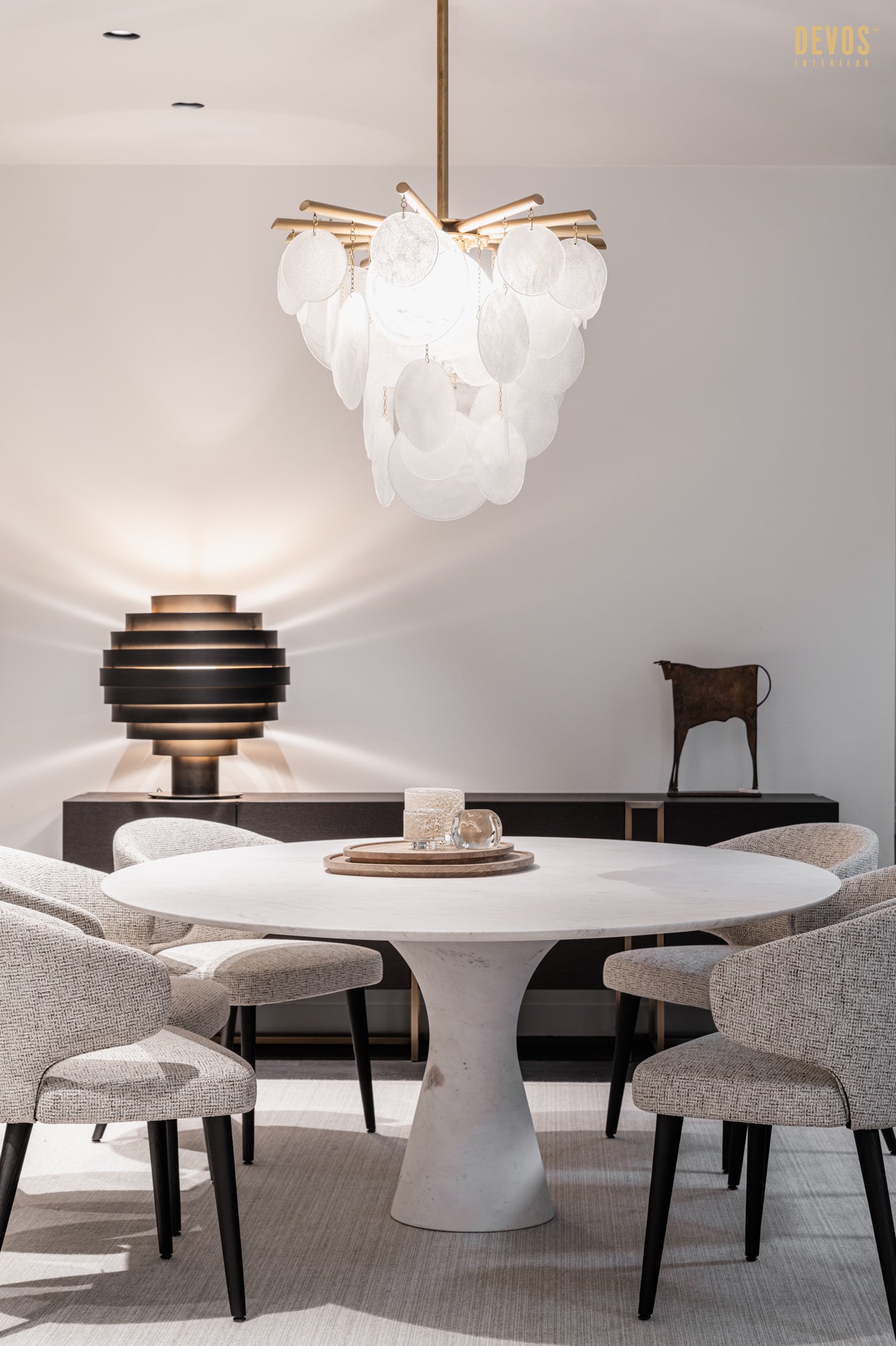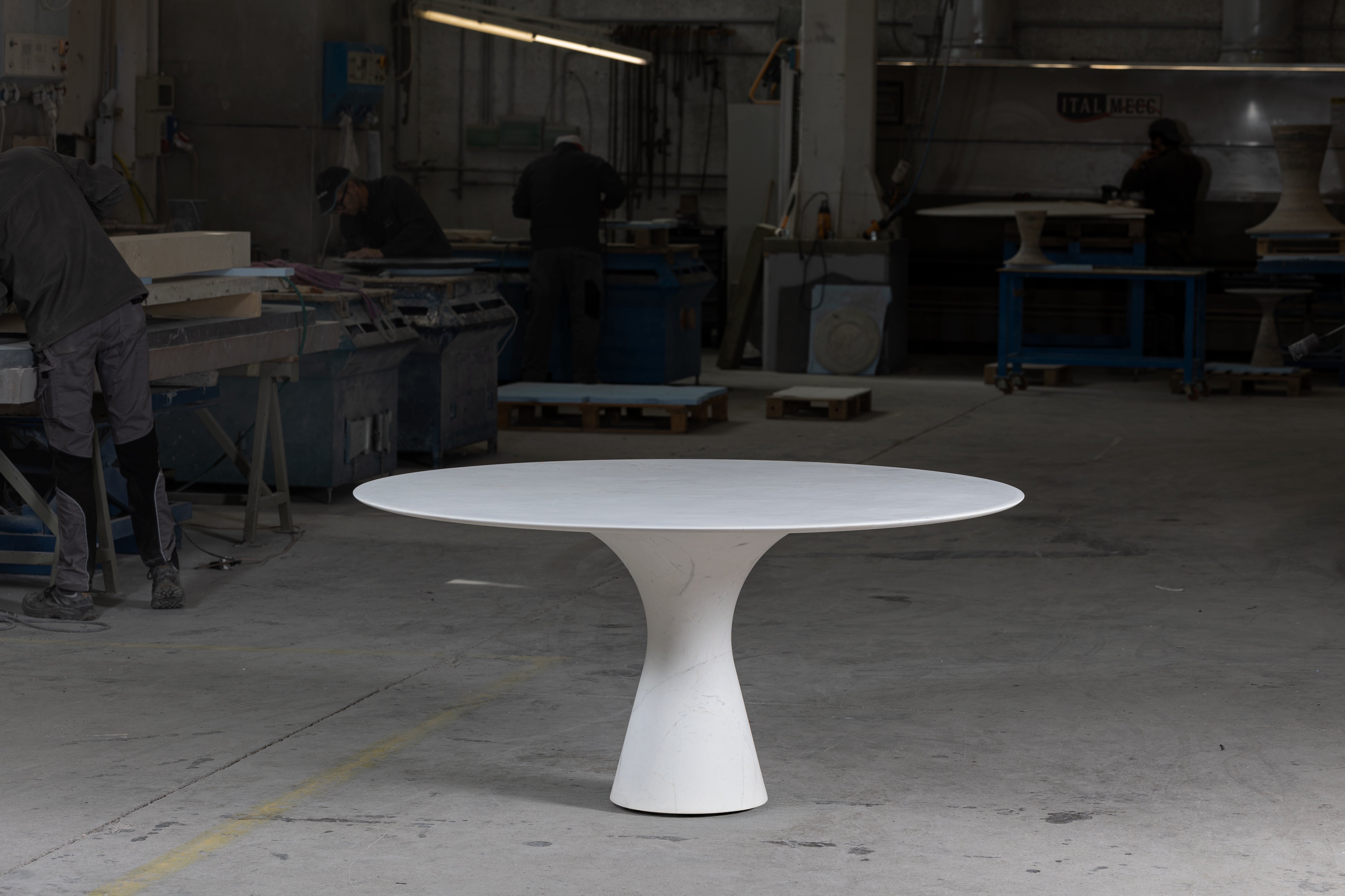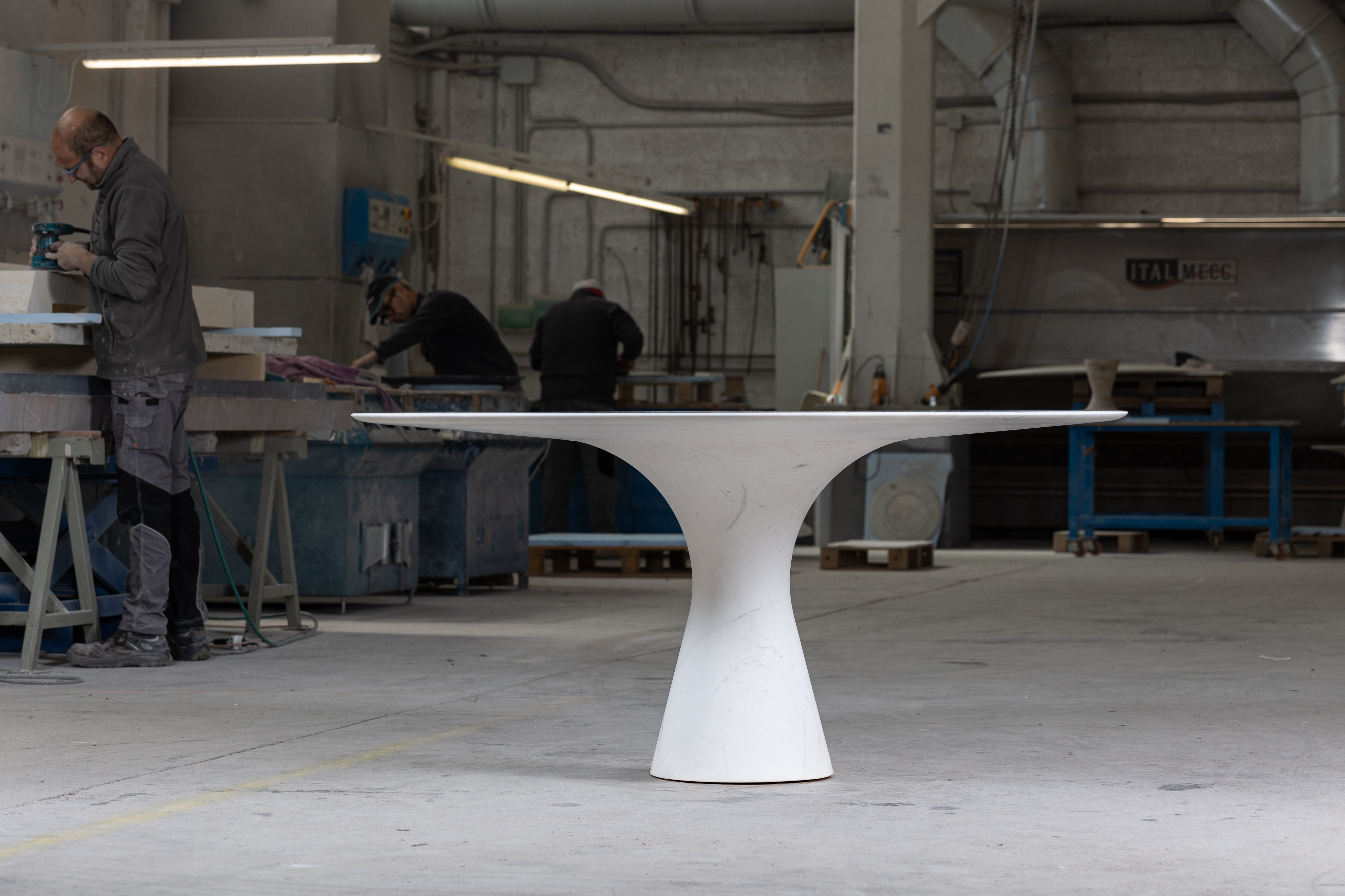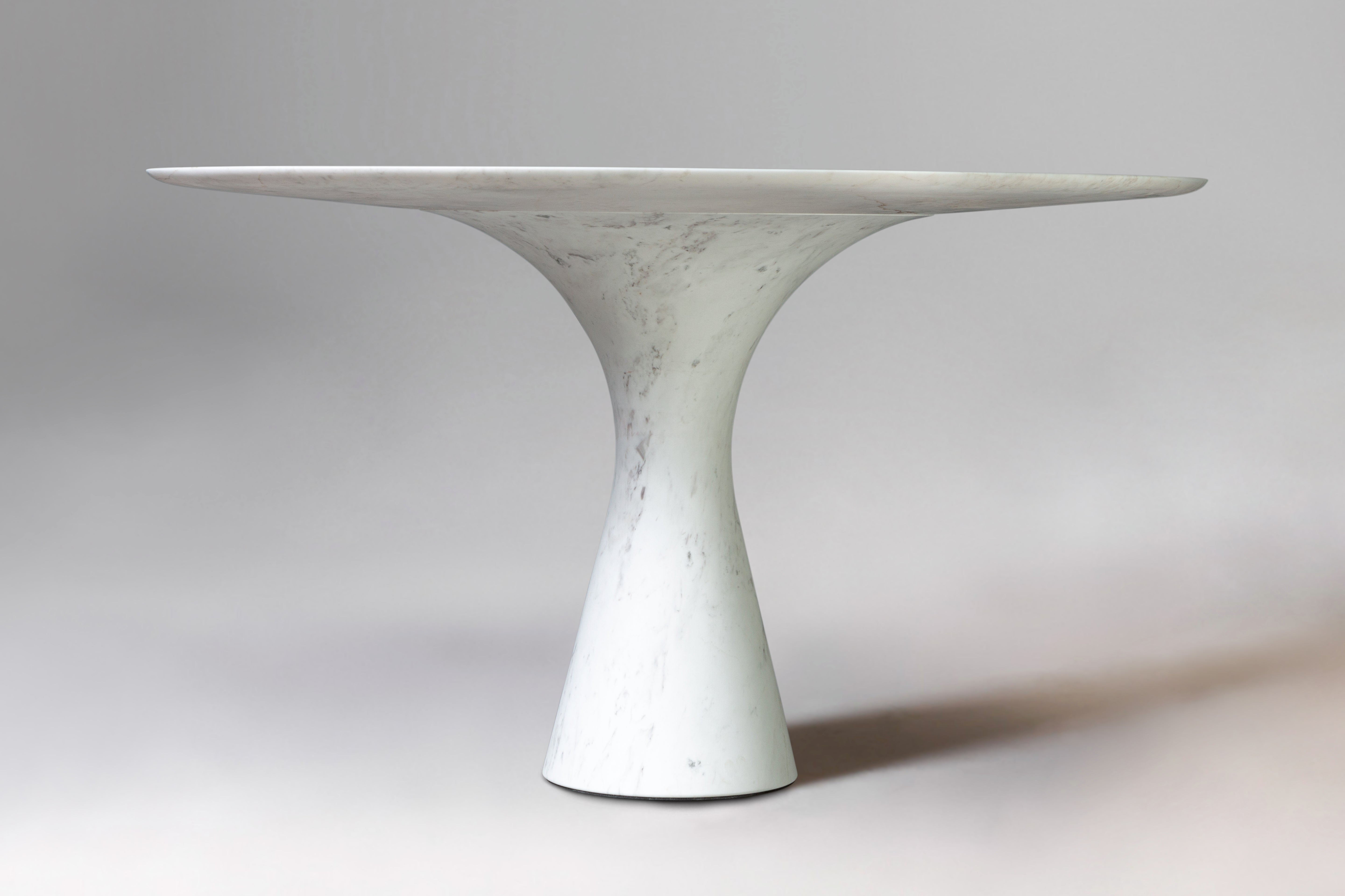 Angelo M is a timeless, sculptural round or oval table, available as a dining or side/coffee piece, crafted from natural stone. The seamless connection between the conical base and top creates a stable, continuous curve.