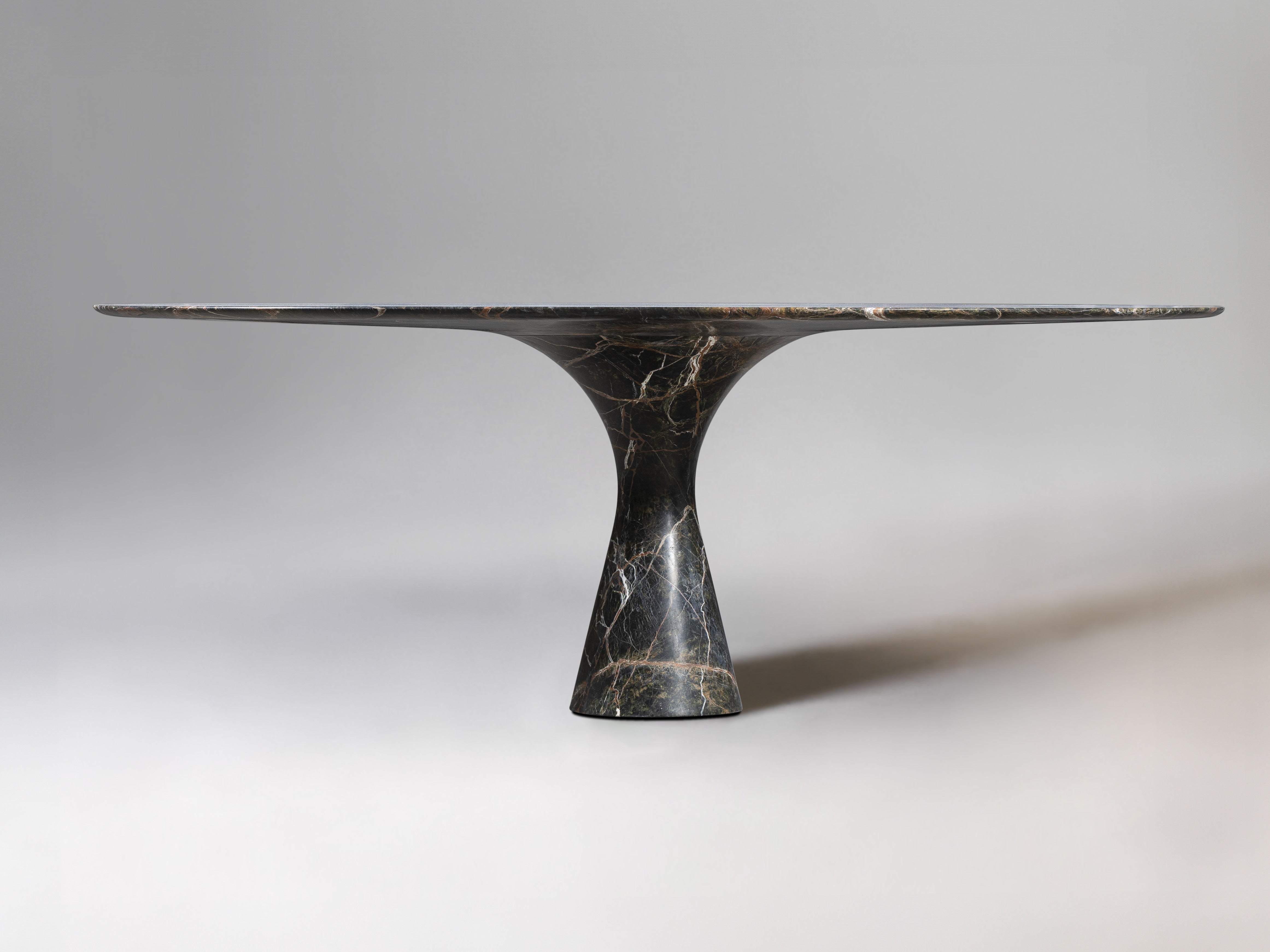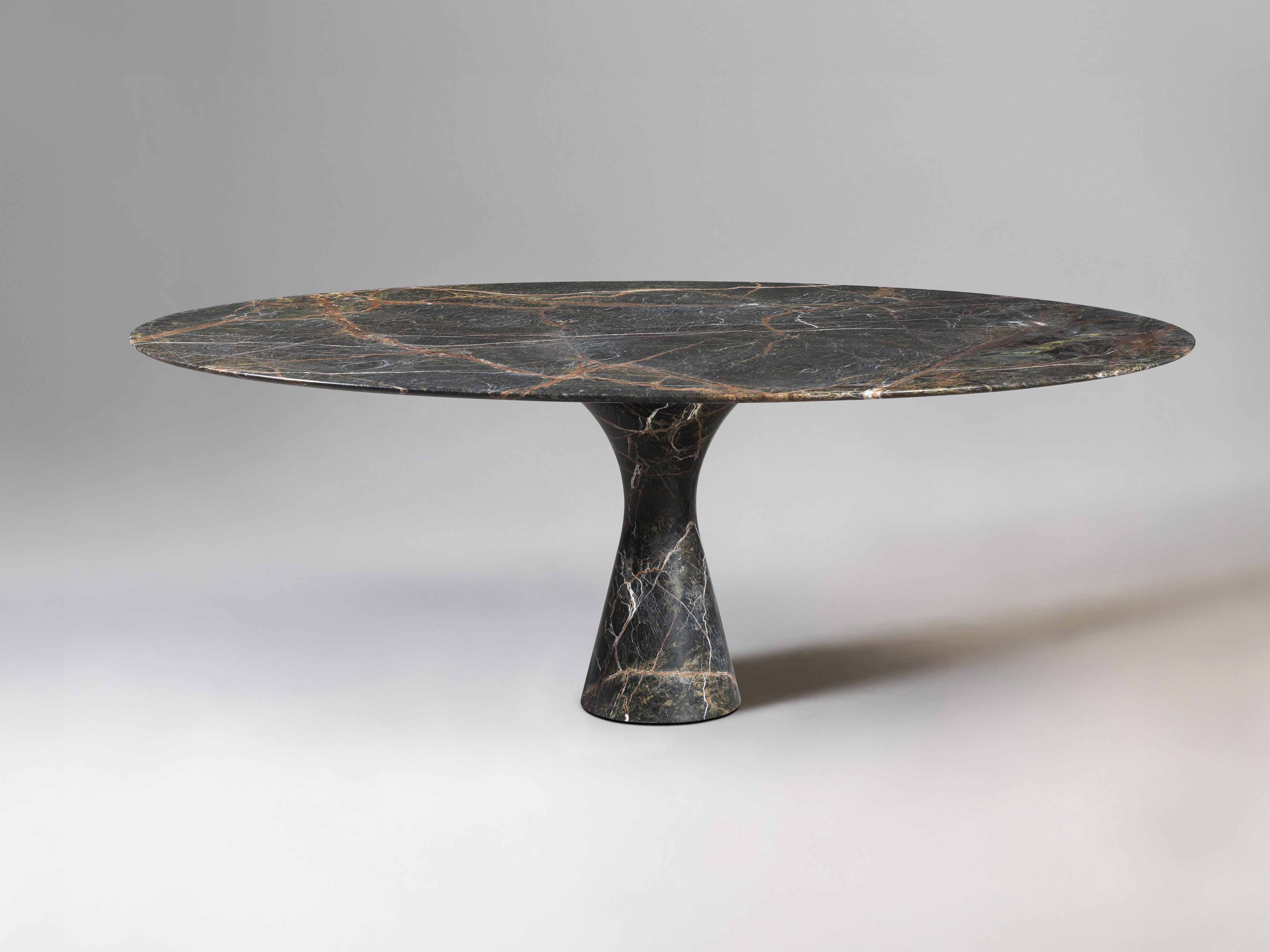 Angelo M is a timeless, sculptural round or oval table, available as a dining or side/coffee piece, crafted from natural stone. The seamless connection between the conical base and top creates a stable, continuous curve.