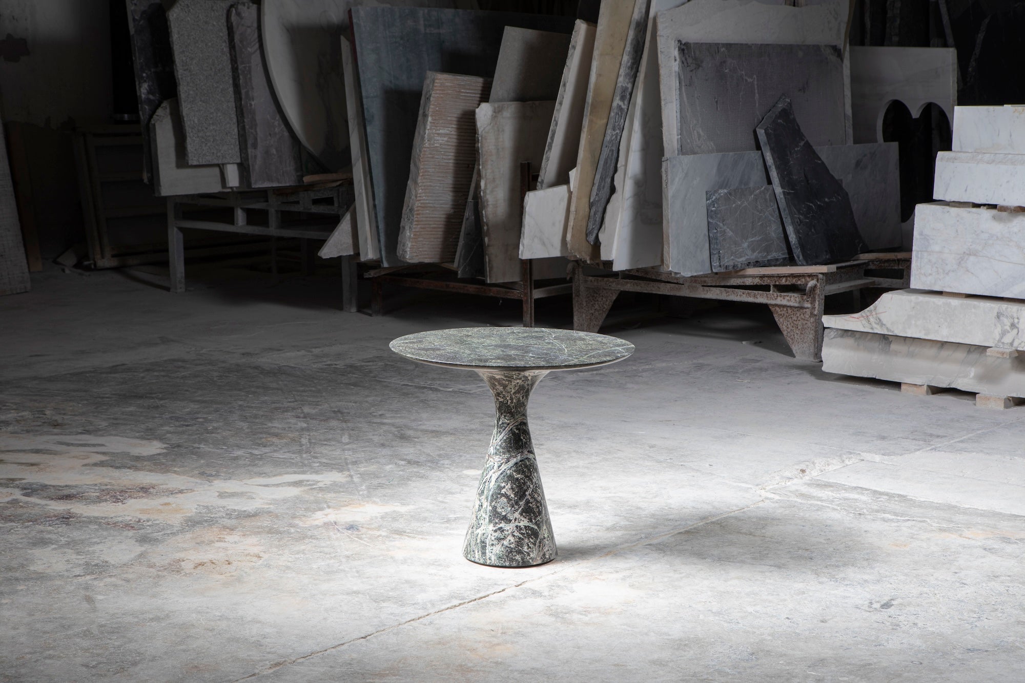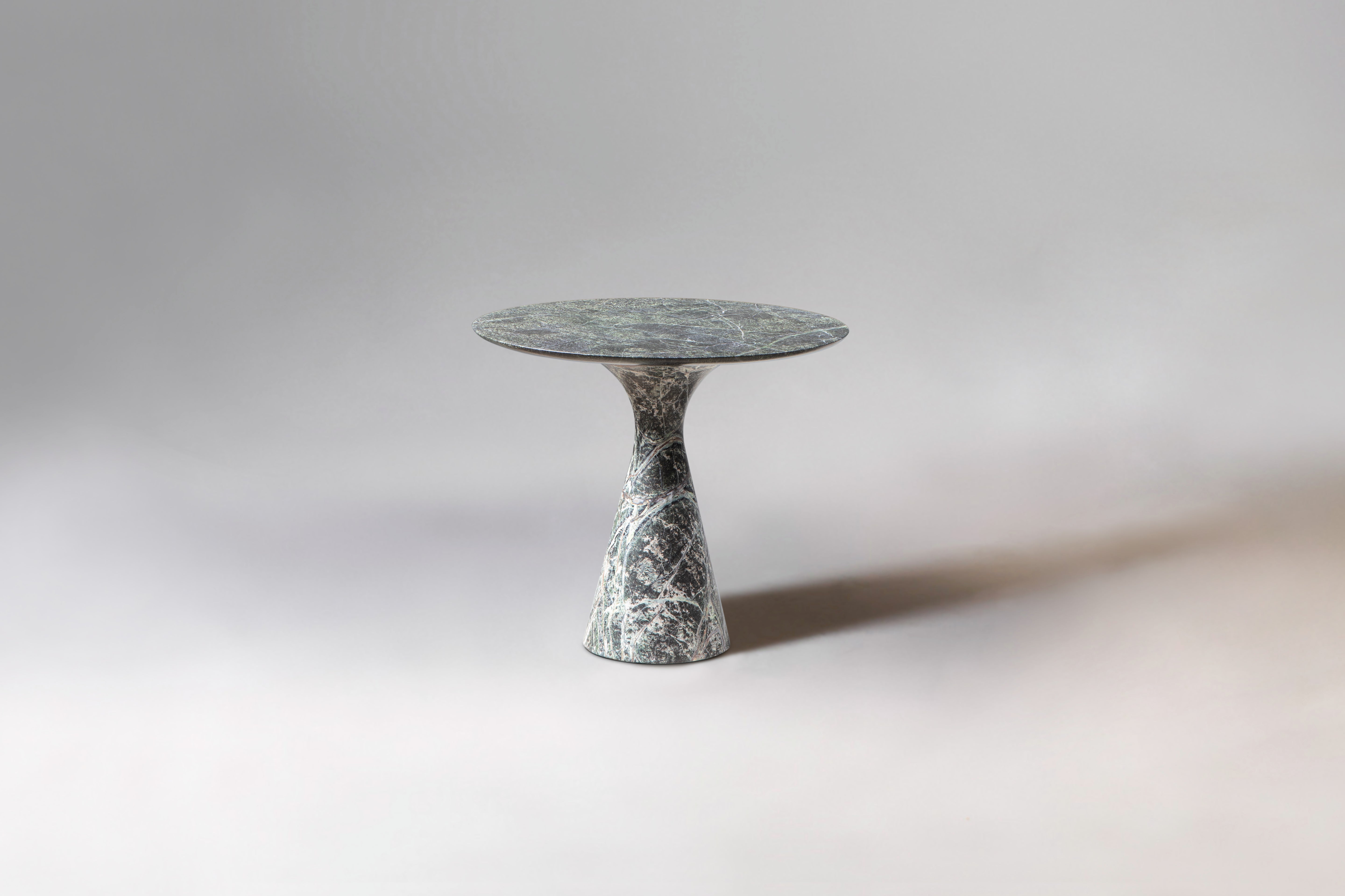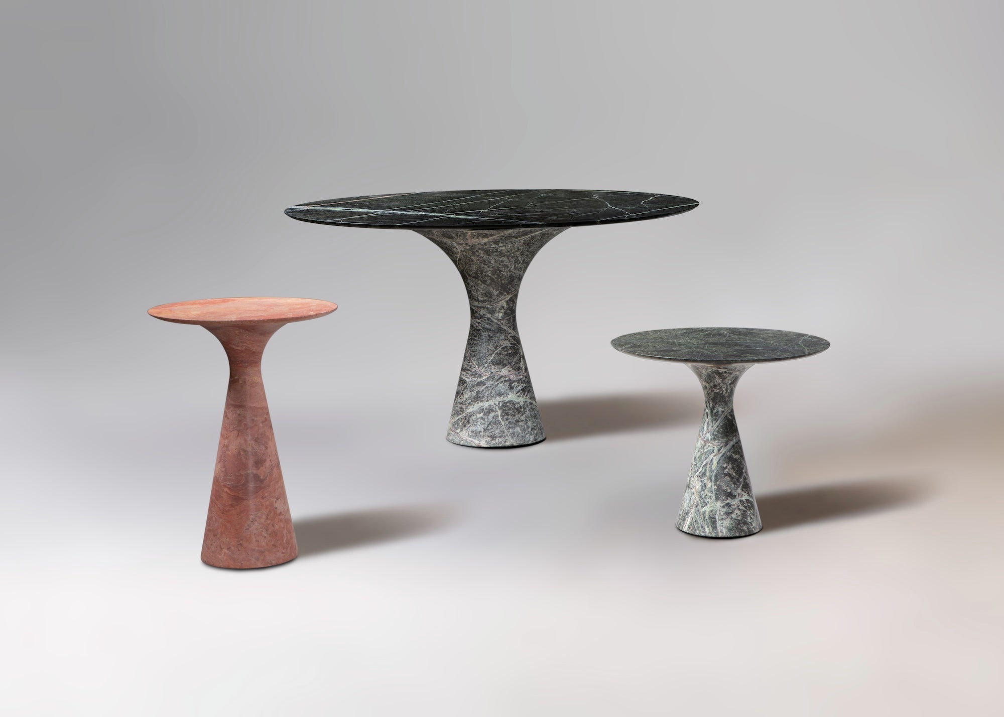 A family of side tables of different heights and dimensions that are perfect to combine. Two elements, table base and top, form one whole together. The bottom is one running curve from table foot to edge. The conical connection creates a stable whole.