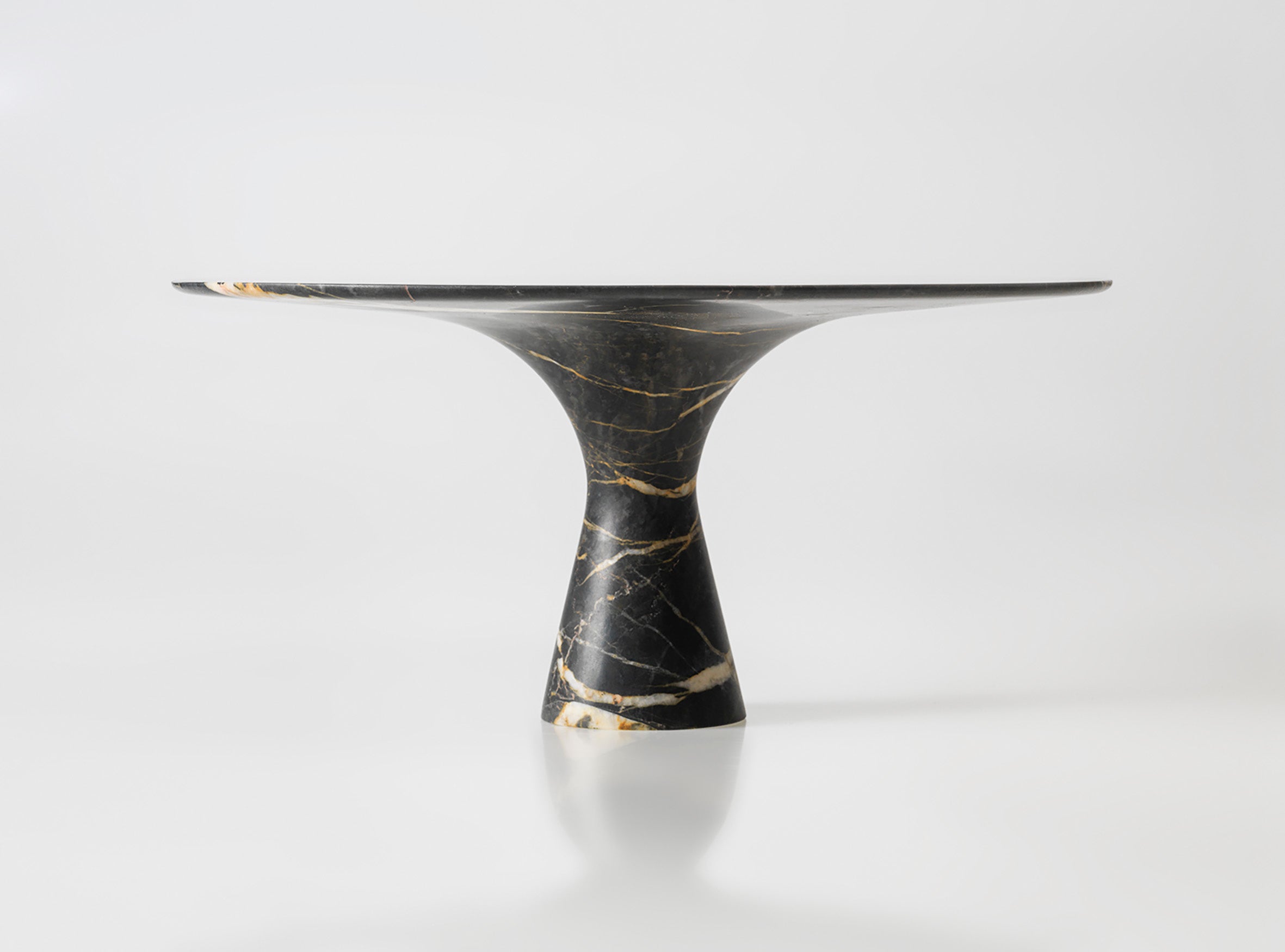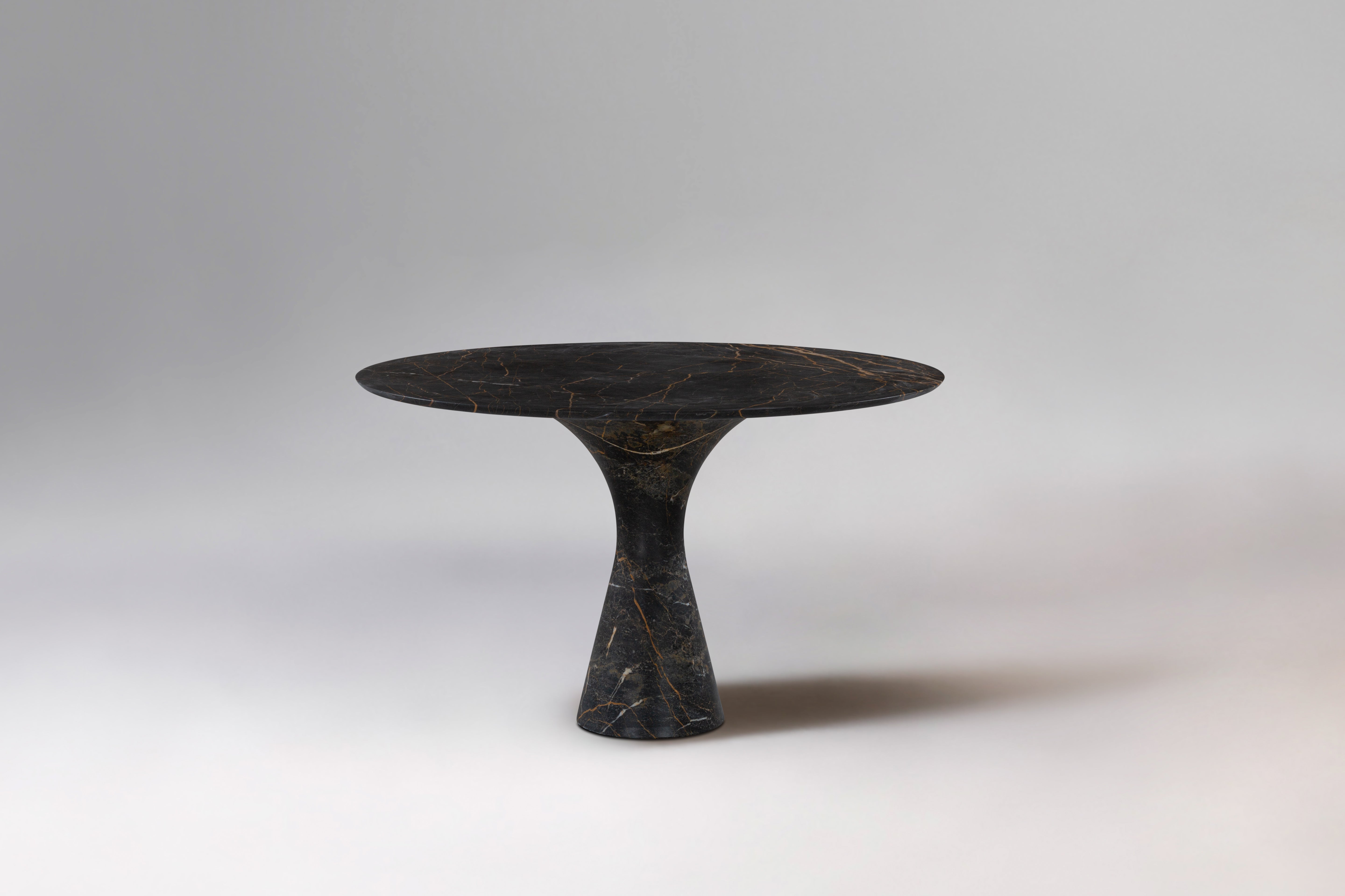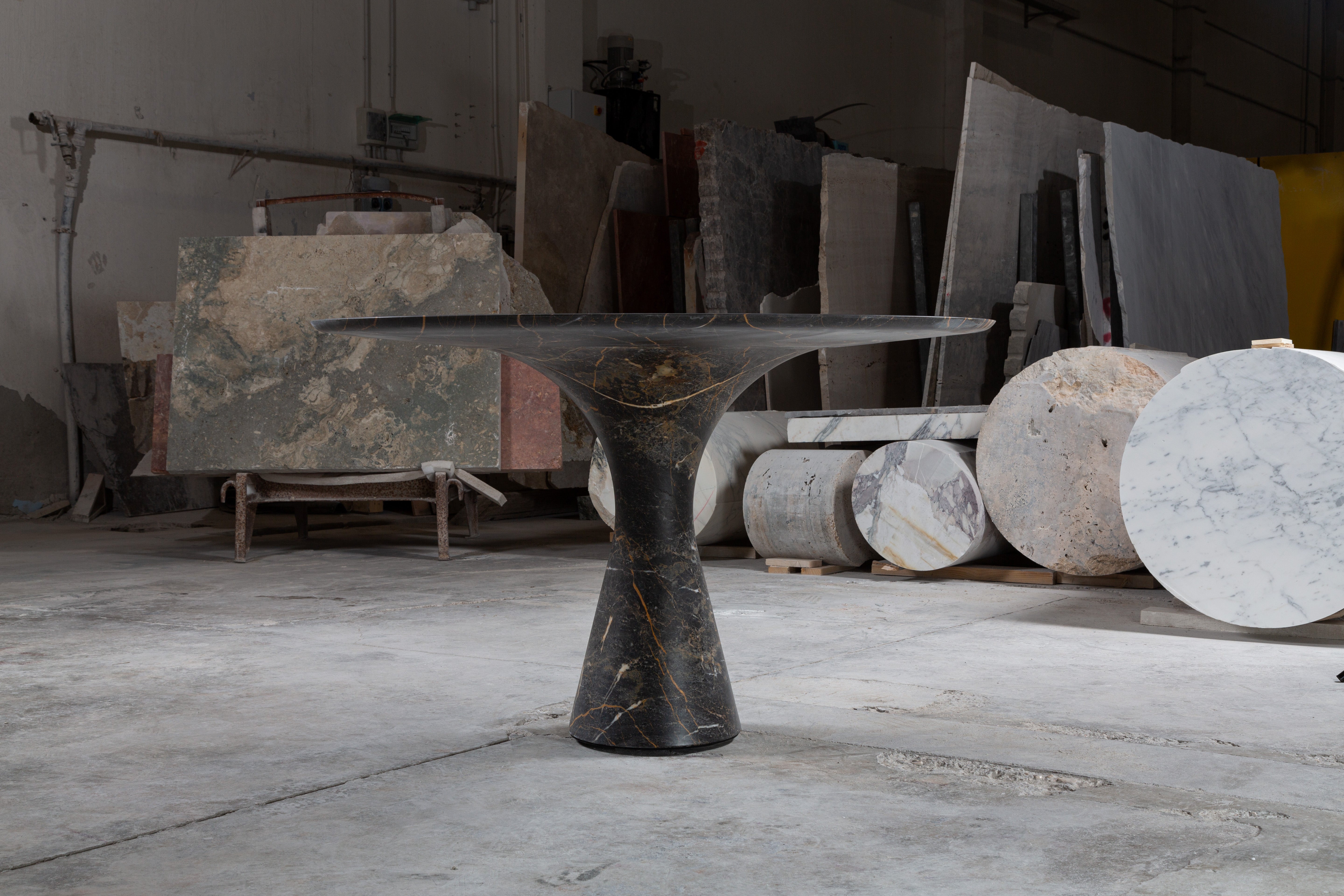 Angelo M is a timeless, sculptural round or oval table, available as a dining or side/coffee piece, crafted from natural stone. The seamless connection between the conical base and top creates a stable, continuous curve.