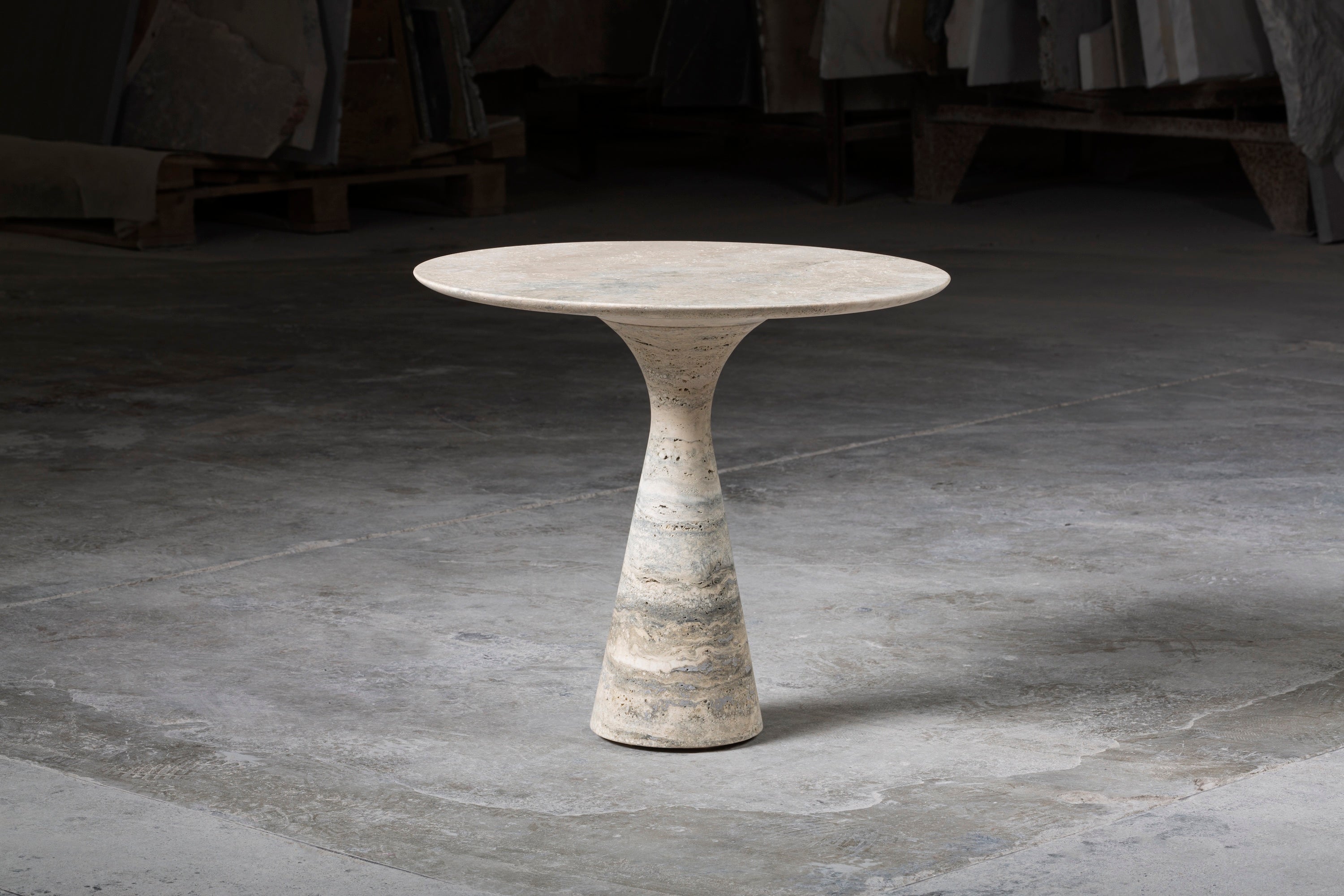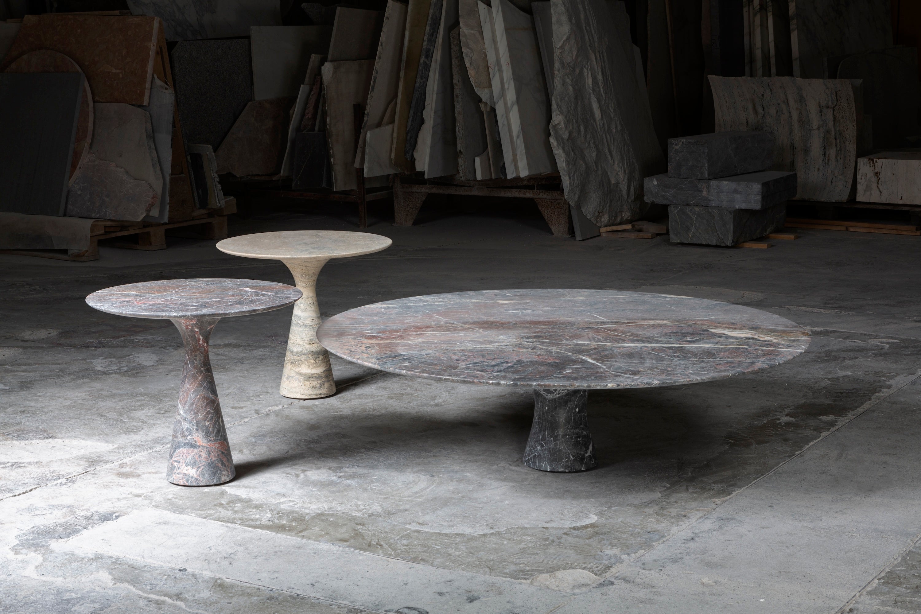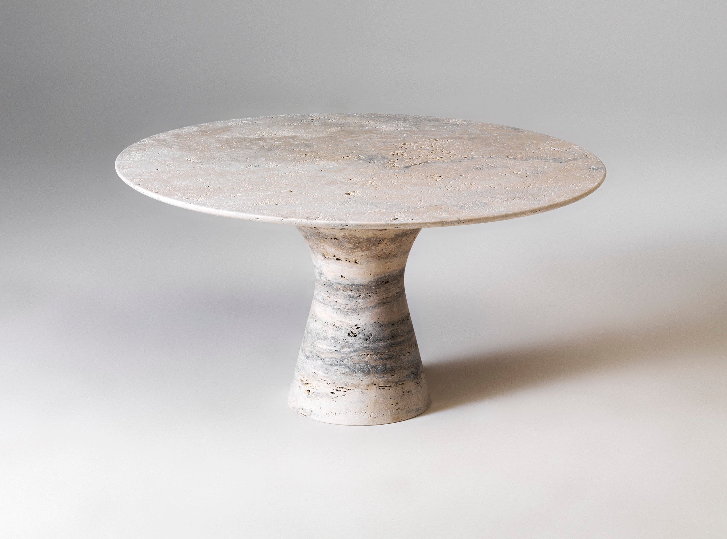 A family of side tables of different heights and dimensions that are perfect to combine. Two elements, table base and top, form one whole together. The bottom is one running curve from table foot to edge. The conical connection creates a stable whole.